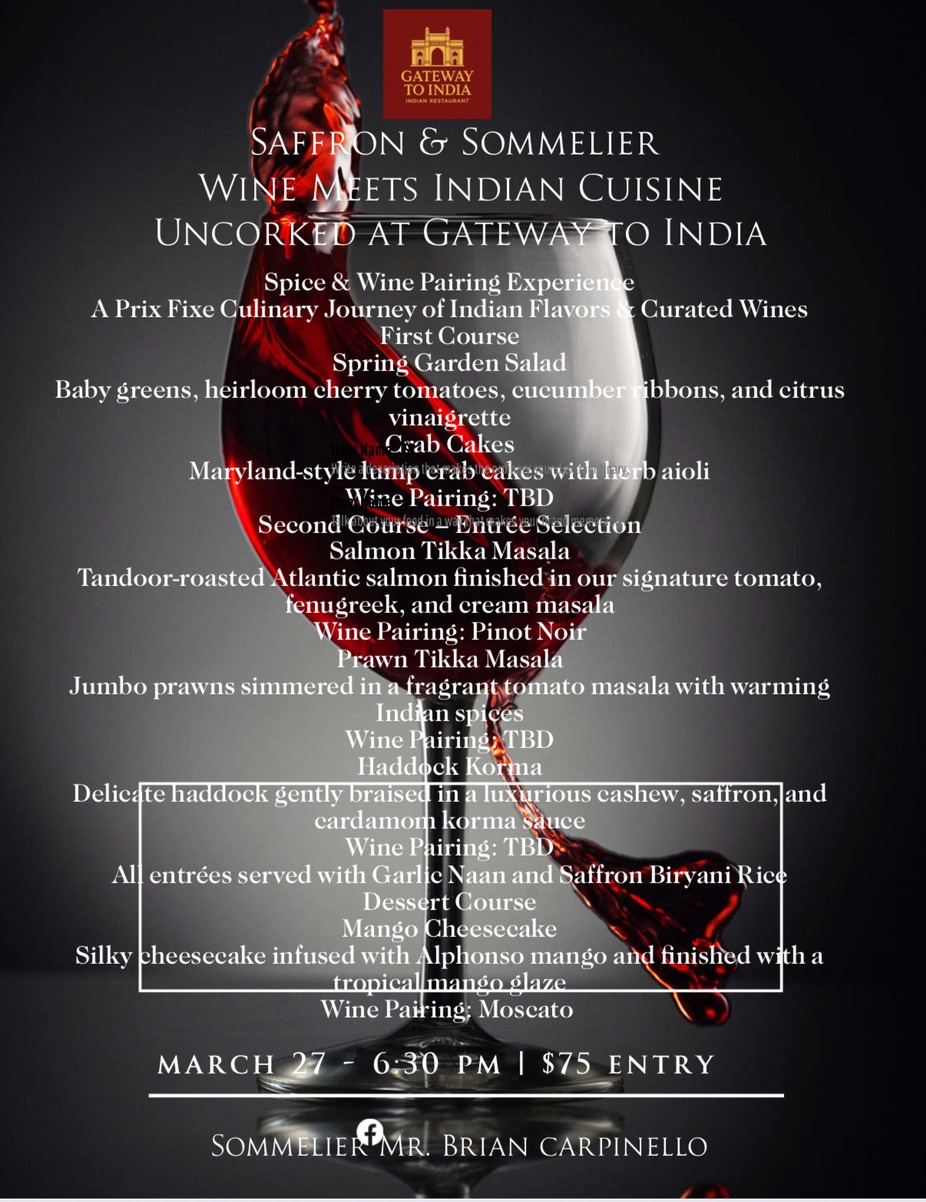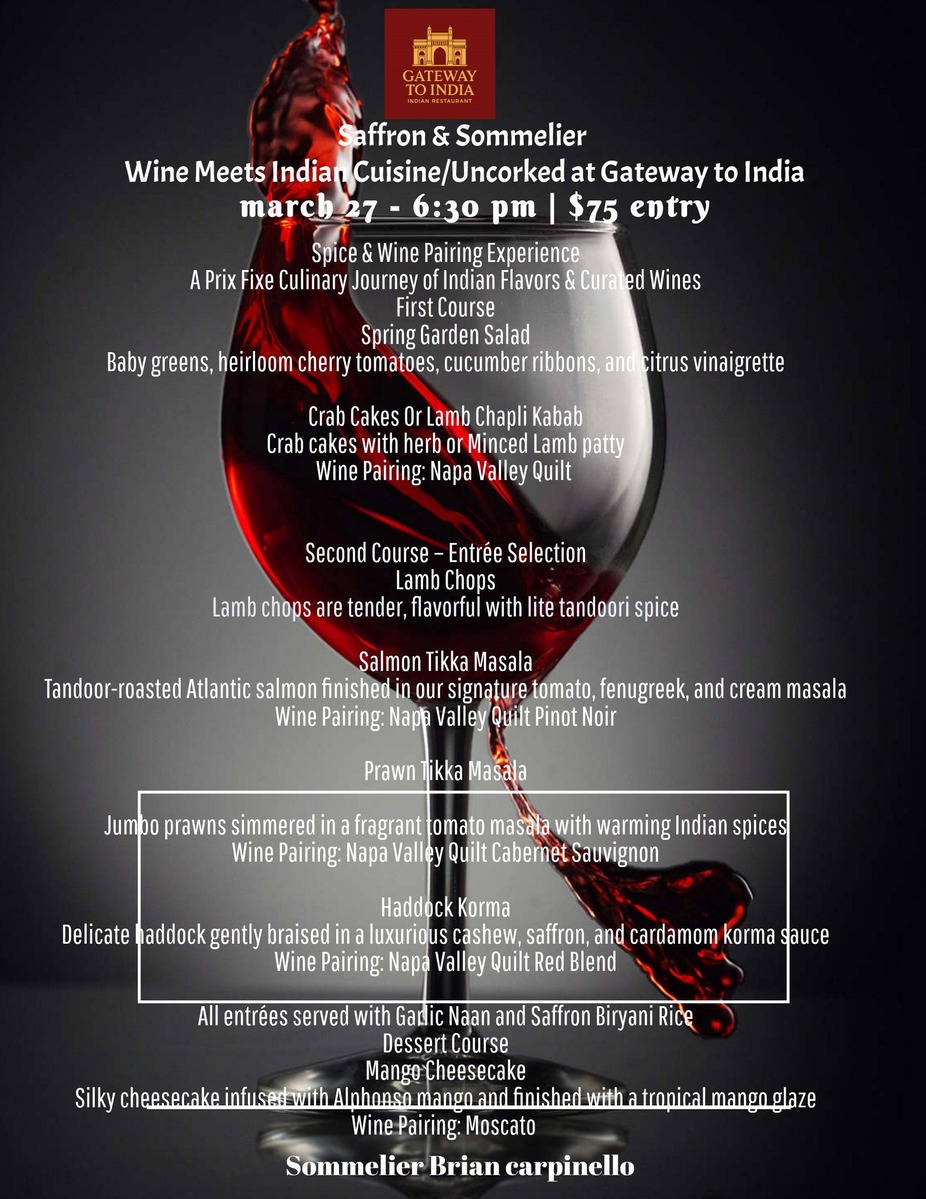 Uncorked at Gateway to India 4 Course Pre Fixe
