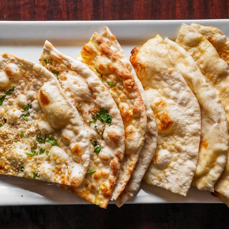 Traditional Paneer cheese stuffed naan with cilantro & sesame